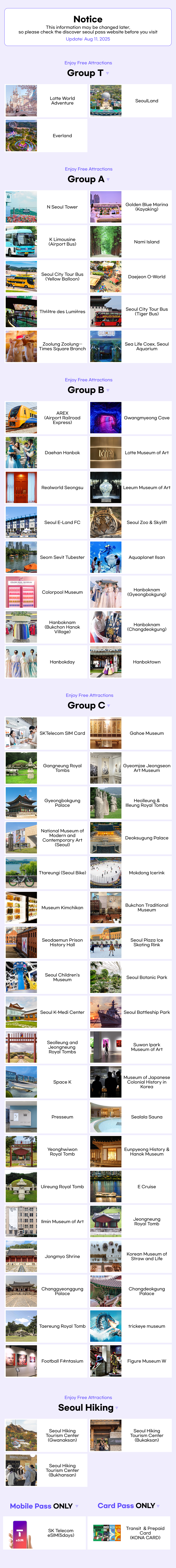 6. Information on the use of Discover Seoul Pass or the franchise tourist attractions may change without notice.