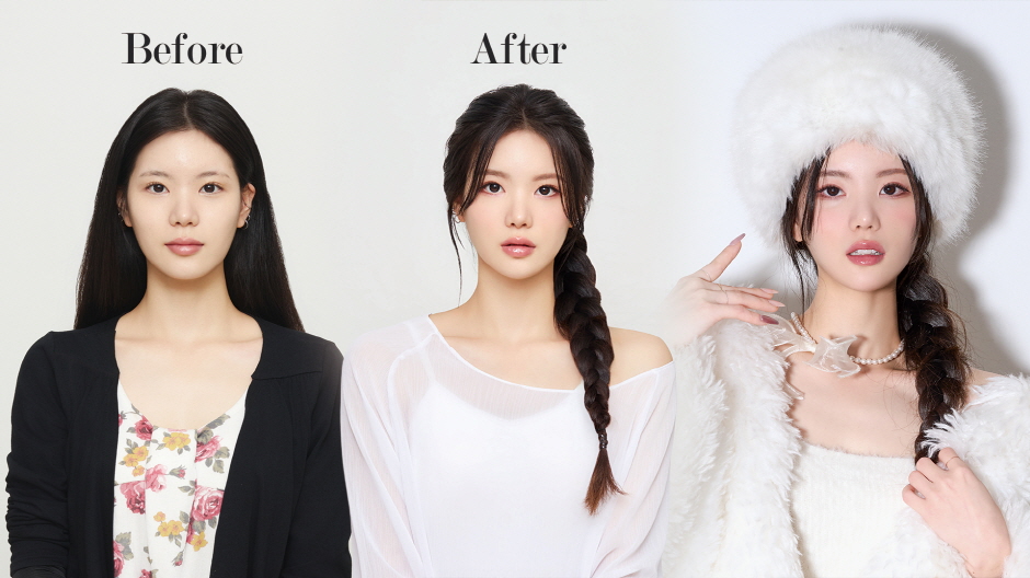 Enjoy a profile photoshoot just like a real K-POP trainee, with 1:1 transformation serivces from a K-pop idol-style hair & makeup artist!