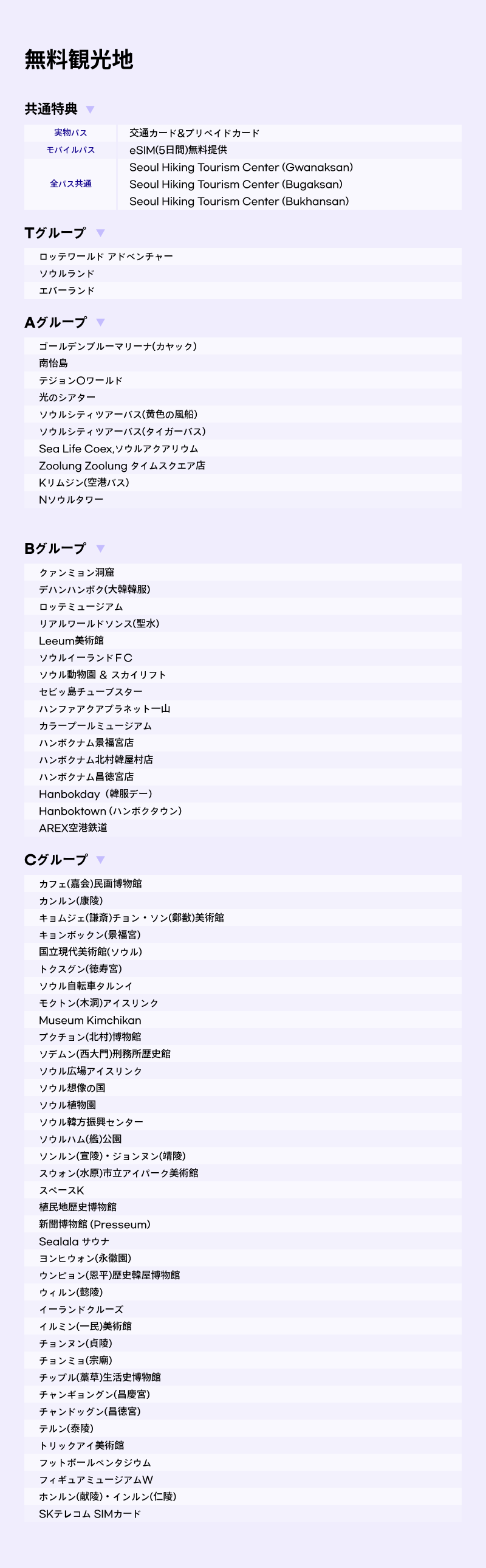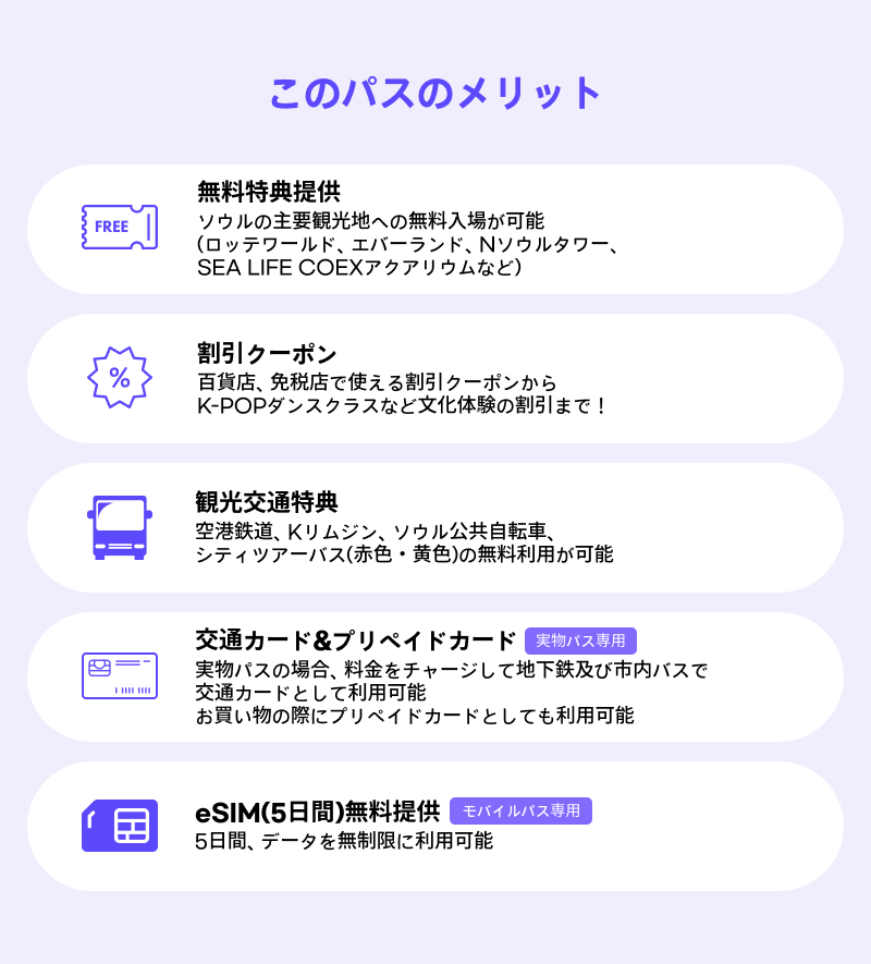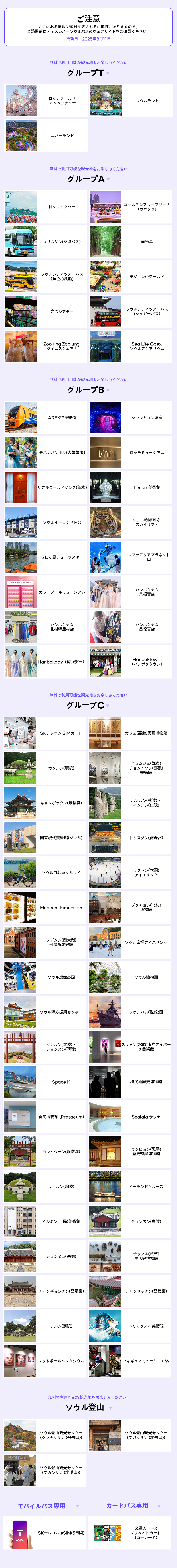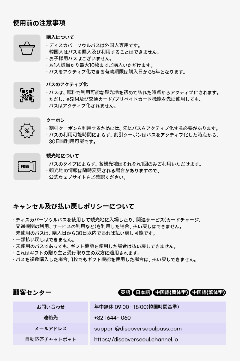6. ディスカバーソウルパスの利用に関する内容や加盟観光地は予告なく変更になる場合がございます。