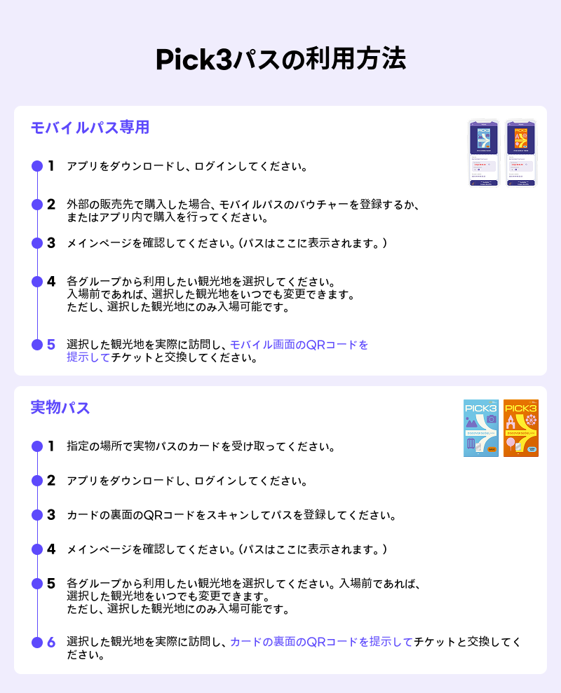 4. 各観光地のチケット売り場でカードをご提示いただき、入場券を受け取って観光地をご利用ください!