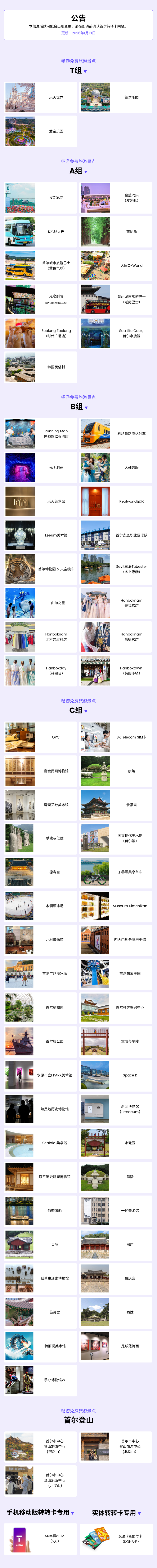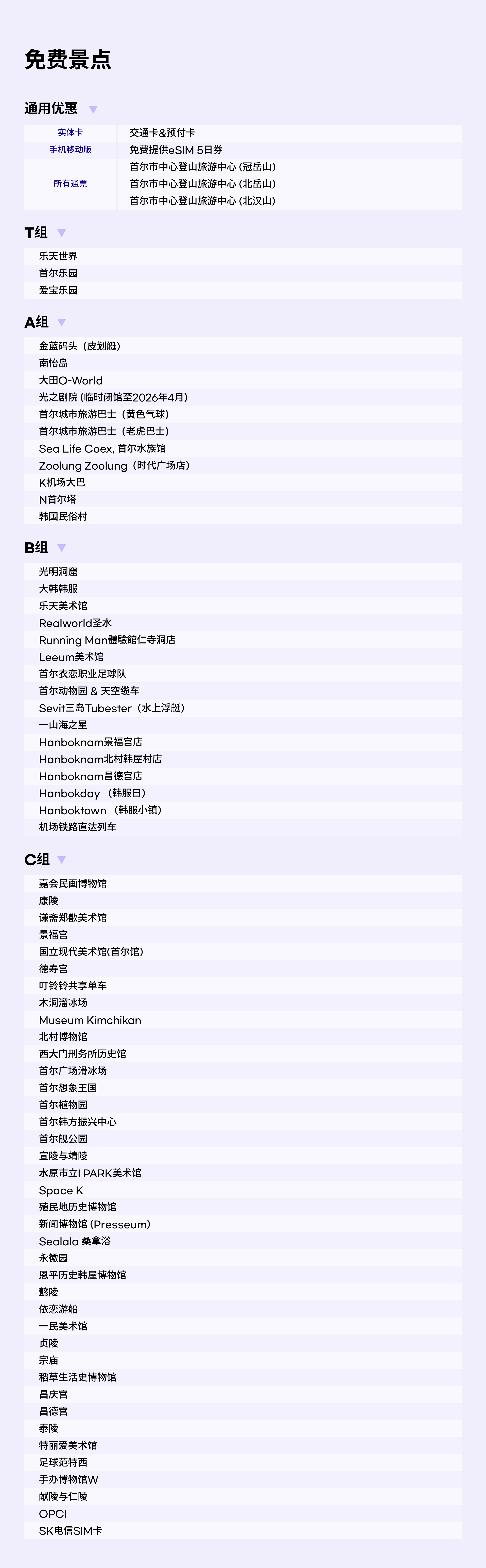 - 1. 免费入场享受首尔70多个主要旅游景点。
