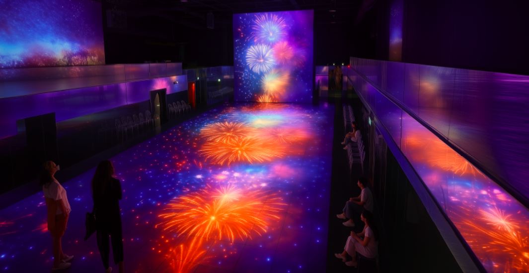 3. 8000万盏LED在地板和墙面上的雄伟主厅内观看的各类媒体艺术,不仅带来欣赏,更带来成为作品一部分的超现实体验。