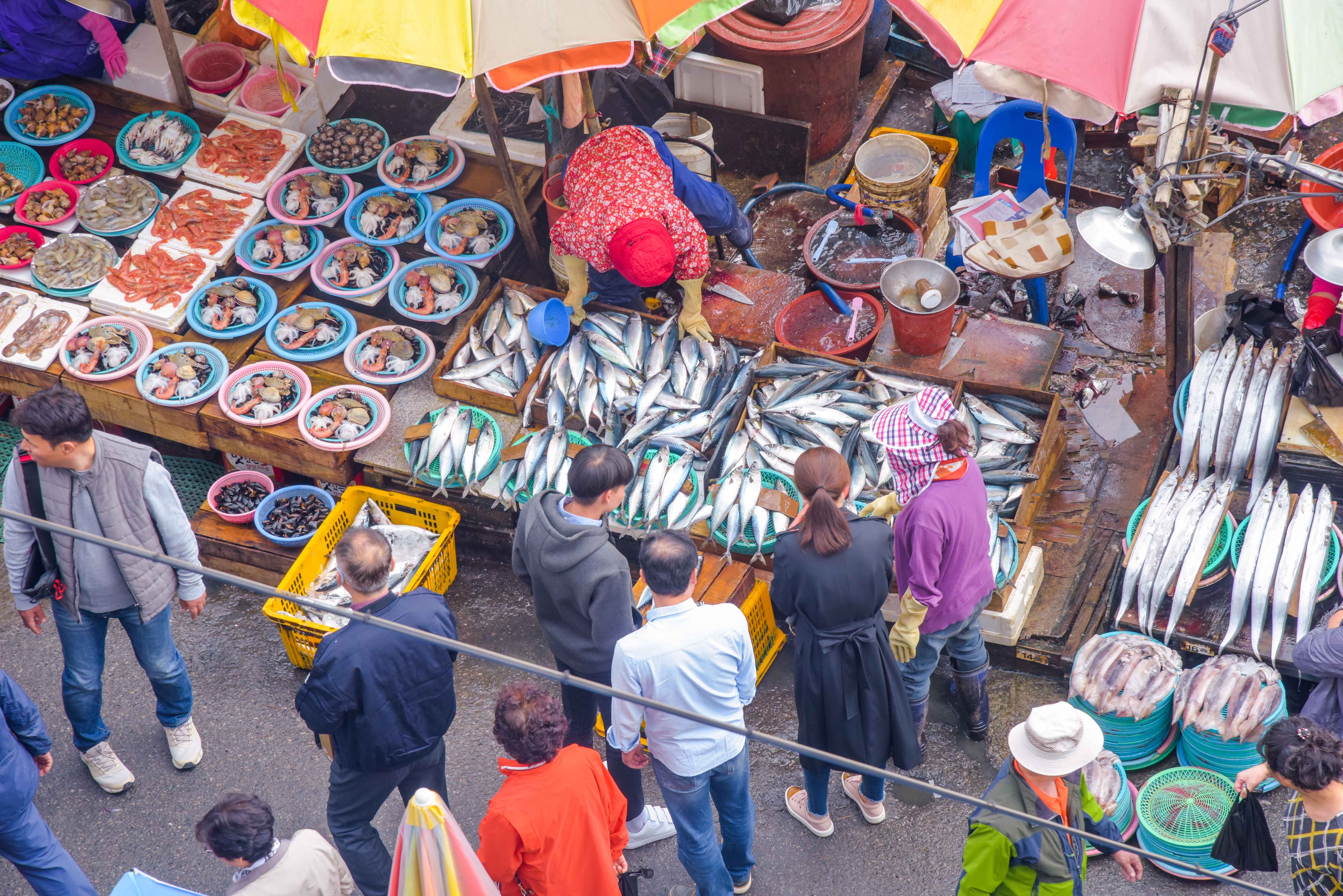 进入可以当场品尝新鲜渔获物的韩国最大的水产品市场吧。 再走一会儿,就能感受到繁忙的街头小吃、历史和当地购物的乐趣的BIFF广场。