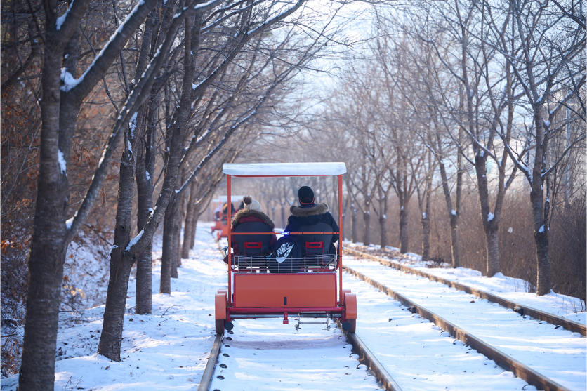 位於北漢江和三嶽山之間,春川的江村鐵軌自行車公園是韓國最好的名勝。 沿着被美麗風景環繞的復古鐵路進行迷人的旅行吧。