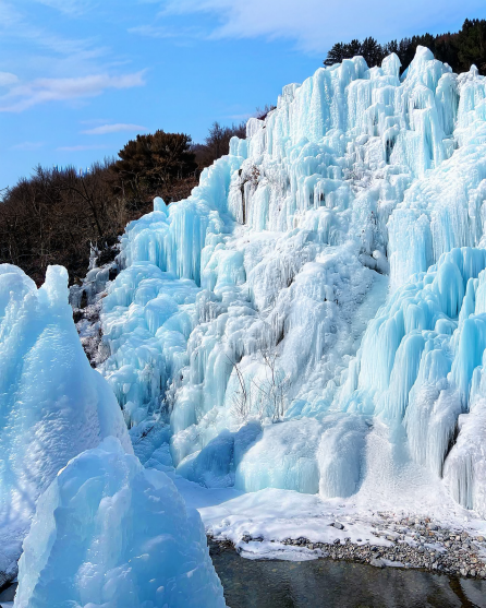 以雄偉的冰壁備受矚目的新興旅遊勝地,62米高的冰壁形成令人聯想起冰宮的巨大冰壁,非常壯觀。