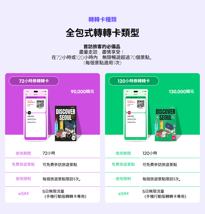 A. 對於從未進入旅遊景點而未激活的通行證,旅遊景點的入場功能有效期爲自領取之日起5年。 但是, Discover Seoul Pass的交通卡功能沒有有效期。