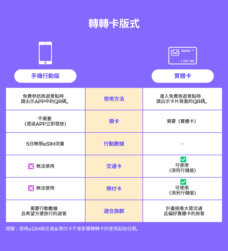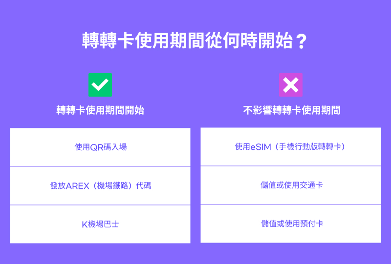 1.本卡的限制時間與交通卡功能使用及折扣優惠無關,在首次使用旅遊景點後立即進行計算(包括使用AREX,叮鈴鈴)。