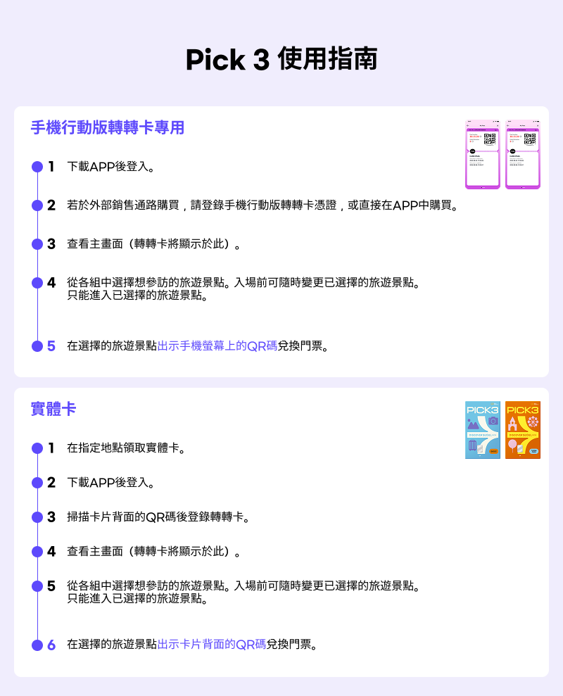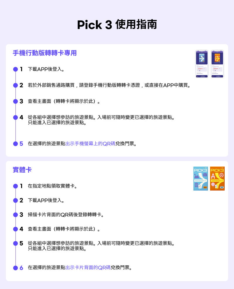 4. 向各旅遊景點的售票處出示卡片,領取"入場券"後前往旅遊景點!