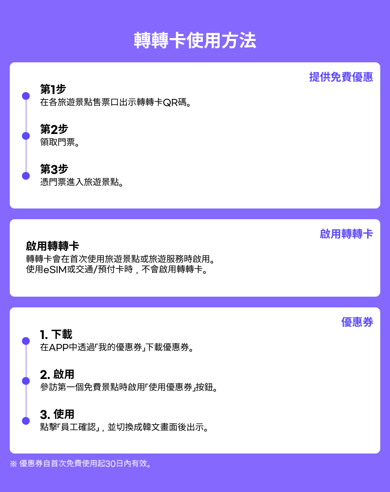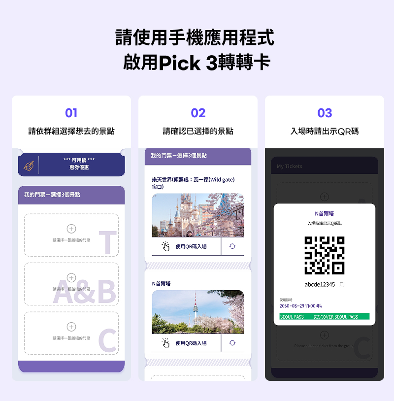 3. 利用Discover Seoul Pass訪問旅遊景點時,必須攜帶實物卡,沒有實物卡時不能使用。