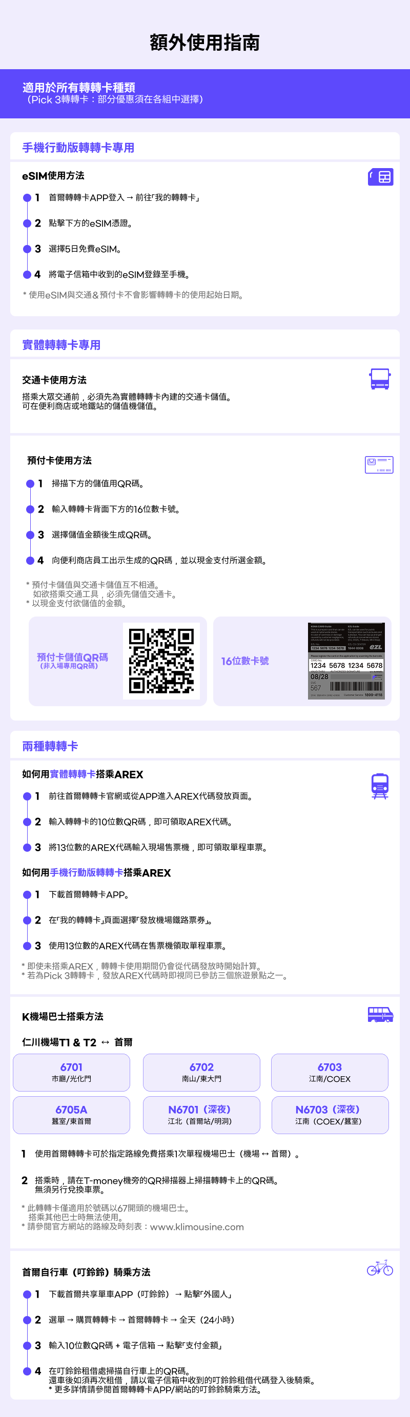 2. 爲了使用交通卡,請在周邊便利店(GS25便利店除外)及地鐵充值後使用。 ( KTX 和 ITX 例外)